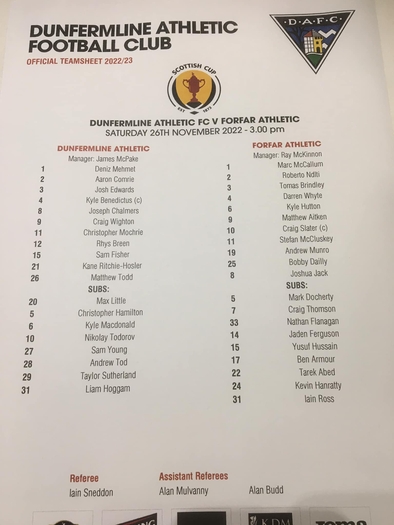 Todays team lines ahead of our 3rd Rd Scottish Cup tie v Dunfermline.